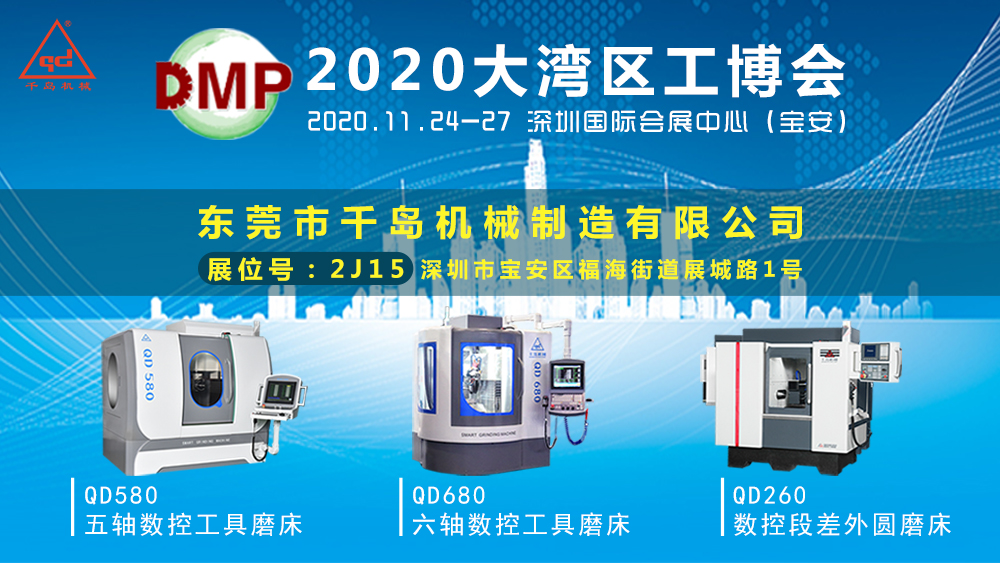 2020DMP大灣區(qū)工業(yè)博覽會(huì)即將開(kāi)幕,千島機(jī)械誠(chéng)邀您蒞臨參觀指導(dǎo),一起見(jiàn)證我們的成長(zhǎng)。十年磨一劍,QD580五軸數(shù)控工具磨床、QD680六軸數(shù)控工具磨床,與您相約。
