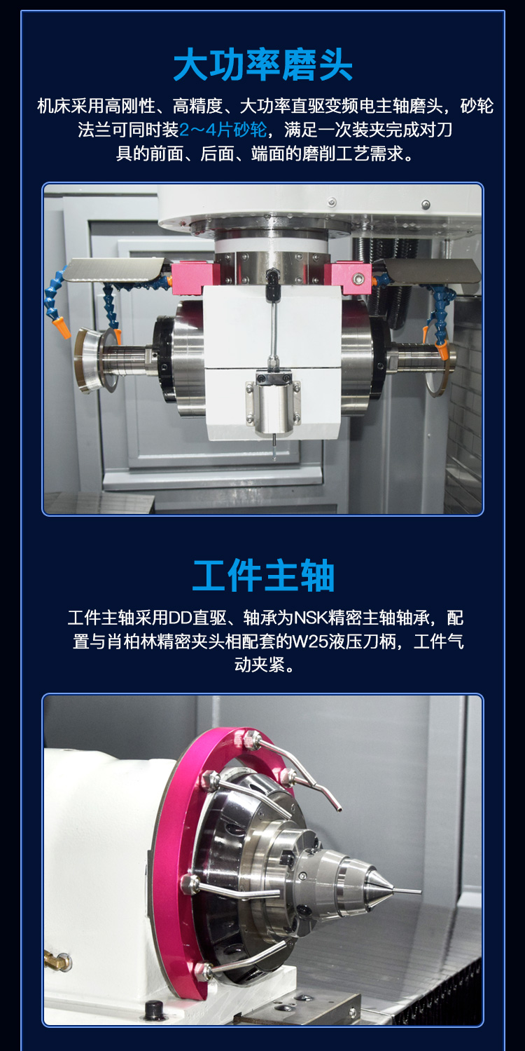 QD680六軸五聯(lián)動數(shù)控工具磨床,適用于生產(chǎn)或修磨小規(guī)格銑削類刀具、鉆削類刀具、成形刀具等